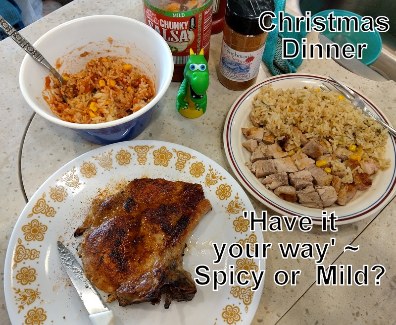 The Advent season has passed, Christmas is over, and a new year has started. The message remains the same: Fear not, God is with us, and Jesus will return again! There were lots of holiday activities available; we missed a few but did attend the Community Christmas program, the school choral concert, and the Christmas Dinner (fancy dresses and suits for the students, kind of like prom with dinner, photo booth, and entertainment, followed by activities in the gym). We walked to church for the Christmas Eve service, continued around “Old French Camp” for the lights, and back home, perhaps 1.5 miles total. Christmas Day, we had a great lunch of fried pork chops and rice (mild to Cajun according to preference) and opened a present this year!