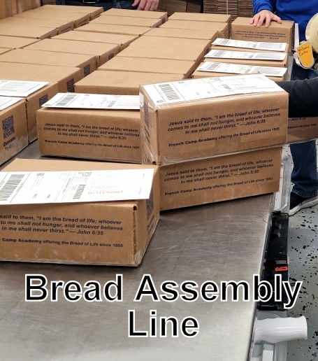 The ladies were a part of 5 bread mailings (sticking lots of shipping labels on their respective envelopes and taping them to boxes of frozen bread for USPS pickup) interspersed with splitting donated hotel queen into small twin-size blankets for the dorms. The bread mailing was completed (didn’t get a final count, 4000+) in the first 2 weeks, the blankets were finished up before Christmas with some extra hours during our break period. We also had two days painting the bookshelf wall cabinets (lots of window panes included) where the men were working.