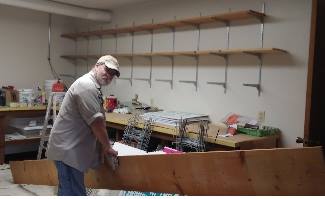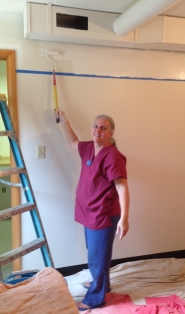 By the end of our first week John was able to do some work for the camp. We worked together most of the time at the “old” offices at one end of a maintenance shed. Before we left we had repainted the ceiling and walls in two rooms, cleaned and reinstalled shelving, sanded and varnished the window and floor trim in one room, scraped and repainted outside window/door trim, cleaned and painted both sides of the inside entry door, and finished up the exterior primer/paint, providing Little Galilee with over 90 hours of volunteer labor, including helping “build” a Gaga ball pit.