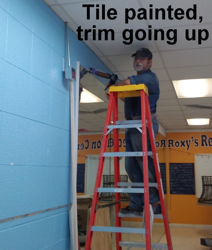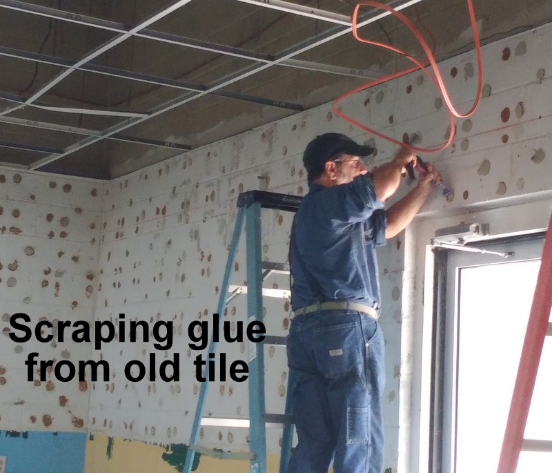 We had one other SOWER couple with us. They had been full-time and with SOWERs for 15 years, now returning for a project after a 3-year medical leave. The guys spent all their time at “Roxy’s” a weight room/fitness center for the campus that was damaged when the rubber roof came off that end of the main building. Acoustic ceiling tiles were glued to cement block walls and painted after the old tile was scraped off. New trim and ceiling tiles were added as needed, and the floor was “stripped” ready for new wax before we left.