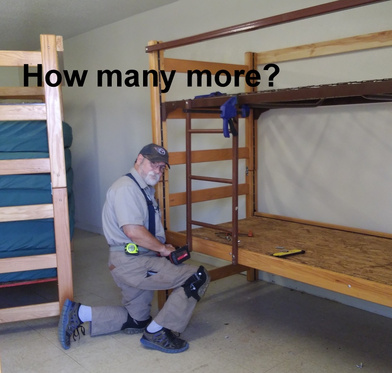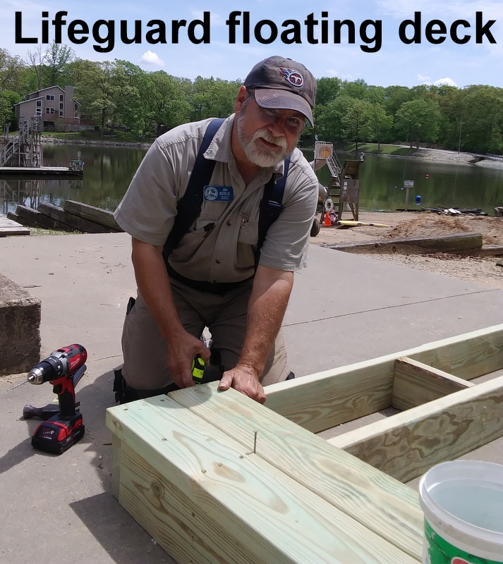 John worked independently half the time and with other maintenance employees the rest. He installed ladders on 76 bunk beds, mattresses on 103 bunks, deep cleaned 16 bathrooms, helped build a huge new dock, and completed a smaller floating dock with high life guard chair at the beach area.