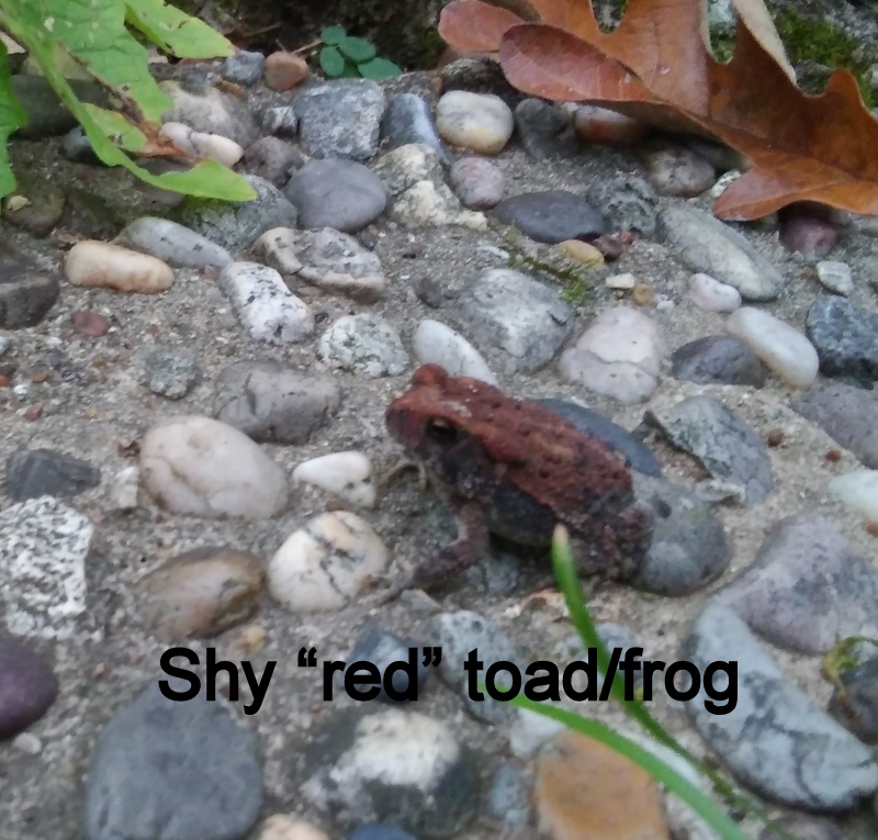 We had several nights below freezing (lowest was 19 degrees) when we unhooked the hose and used our trailer pump and tank. There was a water pipe break one evening but it didn’t affect us since we were prepared for a few days with no “real” running water. Most days were great weather for John to remove the vent covers, scrub the trailer roof, and get everything sealed up again. We were able to have a few more camp fires, coaxed a shy “red” toad/frog to some rocks for a photo, and attended a staff/family early thanksgiving chili potluck with hot cocoa, apple cider, bonfire, and hayrides. Each volunteer day of work earned us a special bonus of lunch and supper; what a great treat after hard days! We took lots of walks and bicycle rides (after fixing flat tires on both bikes), and had a Sunday lunch at “Brisket Love BBQ” with about 16 other SOWERs in this area.