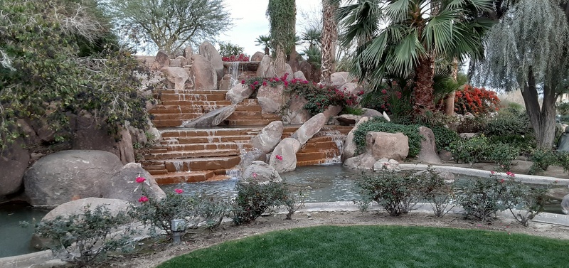 We left right after rush hour for our “short” drive from Phoenix to Indio, California. We filled our gas tank at Arizona mile marker 1 before crossing into California where gas prices were $1 higher! On arrival we set up on part of the cement drive and hurried to a Chinese Buffet around 3pm to get the lunch prices. We haven’t had a buffet for a long time and it made the perfect ending to our travel day.