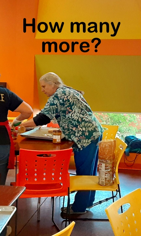 Something new this month, we didn’t have a direct connection to the sewer. It was a surprise on arrival to find we needed to use a macerator pump supplied by the mission to empty our “black” tank. We connected it to our trailer battery for power and our sewer hose, pulled the lever, turned on the pump, and our sewage is pulverized and pumped up hill to the waste pipe. This was fine once we got the hang of it until it was stolen one evening. On arrival there were 30-40 cardboard and blanket “tent-houses” on Indian land, where many homeless people sneak through the fence to get to the mission, that the county was working on shutting down and clearing the land. The mission pump was stored in a large tote which we suspect was taken and used in their move; what a surprise they must have had in opening the lid! By the time we knew it was missing everything left behind had been bulldozed and hauled away, most likely the pump along with it. We can go about 5-6 days between “dumps” and needed to replace some of our old hose anyway so we quickly purchased 40’ of new sewer hose to empty our tank manually – using some of our old hose along with the new hose stretched across the parking lot (downhill for a short distance, then uphill), “working” our way along the 60’ length, lifting up sections of the hose to get it to drain. We now have great respect and truly appreciate the new macerator pump!