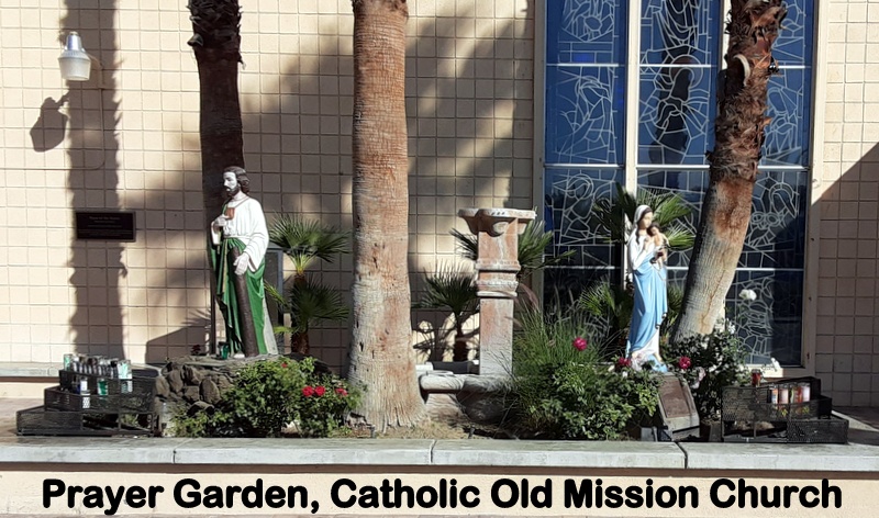 Our week “off” of volunteering we spent touring around the desert area. During this month we have had perhaps 2 days of clouds or partly cloudy skies, higher than average temperature of mid 70-80’s, and about 0.001 in rain (made up of sprinkles only) not helping their 5” shortage of average rainfall. It is very obvious where landscaping and irrigation are, as well as the blocks of barren land that are Indian property. Our first bike trail was 2-3 miles downhill which, of course, meant the same distance all uphill to end our ride. We decided not to do that one again, although it was a great paved trail along a huge dry water channel at the base of the mountains. Other bike rides were to Coachella where we passed a palm tree field with sheep and rode by our project 4 years ago, around the old downtown of Indio with lots of building murals and statues outside an old Catholic mission church, and through some of the ungated housing areas. We re-discovered Red Box and rode our bikes to pick up our DVD rentals! (Midway, 2019 and A Beautiful Day in the Neighborhood, Mr. Rogers; both are great movies.)