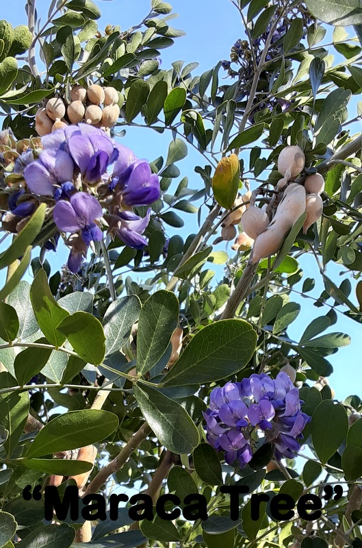 We have been eating out a bit more this month: Valentine’s Day we were at an Italian restaurant, we shared a happy hour appetizer at the “Jackalope” and some lunches after church, and made two trips to Cold Stone Creamery for wonderful ice cream (once as a social time with our other SOWER couple, and once with a coupon for John’s birthday). The Jackalope Ranch is an interesting place with beautiful gardens with fountains, honeybell orange trees, stuffed “jackalopes,” “Babe” the pig, a wood motorcycle, and round high tables with rifles for the legs. (A honeybell orange is a cross between a grapefruit and orange, with a sweet flavor a bit milder than a red grapefruit.) Flowers abound, irrigated of course, and the rescue mission courtyard has yellow, red, purple, and orange flowering plants and trees. Our favorite we named the maraca tree, purple flowers that smell like grape bubblegum and pods with two hard seeds that shake like a maraca. On further investigation it is a mountain laurel tree and the pods/seeds are poisonous. There will be lots of flower pictures next month as we stay on here in the desert springtime.