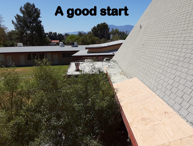 April was a month of adjustments for us, as for everyone. After moving there is always a change in routine since your surroundings have changed, but this was different since it is “down” time with no structure to fall into, along with social distancing and stay at home orders. We completed the material quote for the church and waited for approval, almost two weeks, before getting materials to start on April 13. John and his helper Justin put in over 60 volunteer hours with lots of brain work and fitting to get the slopes and angles right for the adjoining roof sections. The weather kept getting hotter, the roof and tools as well, and by the end of the month they were starting at 6am for about 3 hours each day.