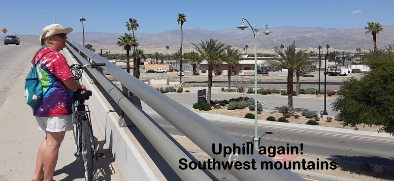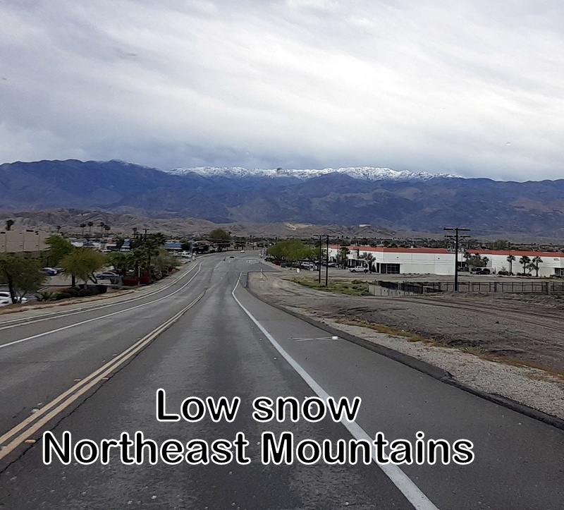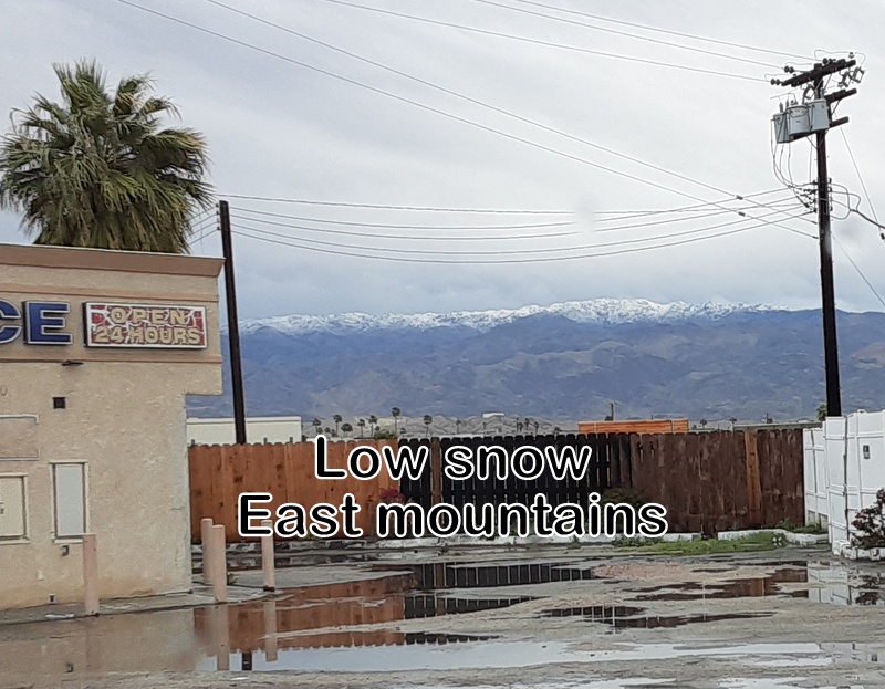 It was a Friday evening (April 3) right before 6pm that we experienced our first, and hopefully last, earthquake. We have been in some very strong winds that push the trailer about, but nothing like this! We looked at each other thinking someone had backed into the trailer tongue as we rocked back and forth, at the same time wondering if “the end was near.” Immediately we flipped the TV stations and found it was a 4.9 earthquake with 3.6 aftershock waves, the epi-center about 25 miles away. A few weeks later we had lingering cool weather that brought some overnight rain and dropped snow down to 2500-foot elevations. We woke to see the lower mountains with white tops, just for a few hours, but a beautiful sight. (Our two big mountains here get snow regularly in the spring and still have white tops after two weeks of 100-degree temperatures in the desert valley.)