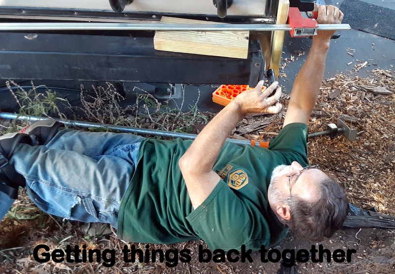 John also spent a lot of time researching and watching videos online to get ideas to fix the back wall of the trailer. We made a 40-minute trip to Home Depot for some materials for the repair with more shuddering brakes causing Connie to declare there would be no more road trips until they were fixed. However, our first priority was the trailer repairs. After we stored all the instruments in the “music room” of the school (where we gather for our morning singing, devotions, break time, and ice cream fellowship), John spent a few days to complete the repairs then moved on to washing and waxing both the front and back of the trailer so it could be caulked. We could still use the van for our grocery trips but found we could bike and/or walk almost as easy. The grocery stores and Ace Hardware are a mile or less, and McDonald’s is right on the route!