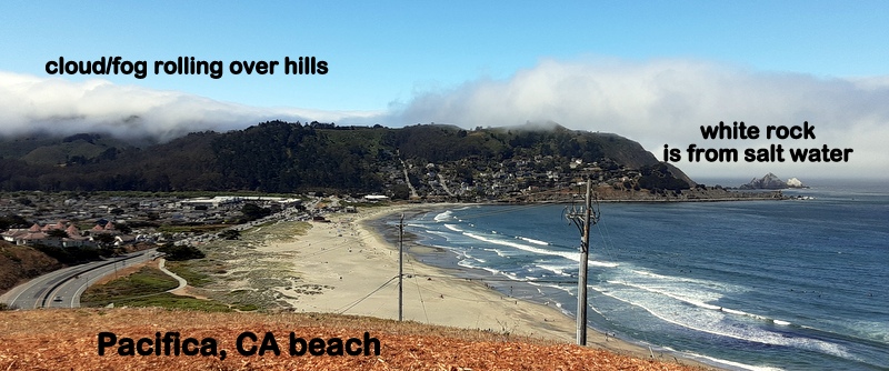 Well, our two days of driving to our volunteer project in Pacifica, CA (just south of San Francisco) were hot, stressful, scary, and exciting as mentioned last month. At the end of travel day one the freezer door was stuck and “fell apart” as we jiggled it open – not to worry, the panels slid back together fairly easy. When we got into the trailer at the end of travel day two, we found the freezer door open with food thawing on the floor. That made for some interesting and creative cooking! Our first evening brought a full moon rising over the hills bringing peace into our hearts even with all our travel problems.