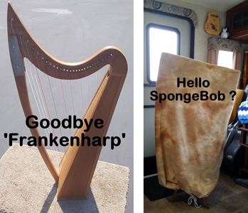 Connie borrowed a waffle iron from our neighbors and made two batches of waffles (plain and blueberry); they sure were great from the freezer/toaster and lasted most of the month. Our neighbor also did a lot of sewing for Connie; new covers for the daily used rice packs, a thrift store skirt made ready for an elastic waist, and a harp cover for the new harp. The old harp was nicknamed “Frankenharp” because of the plate and bolts through its neck, the new one with the cover on may be called “SpongeBob” due to the square design from a box insert to protect the string pins, levers, and inside of the fabric. John has received the last of his “wish list” tools, a cordless oscillating cutter/sander which our fellow SOWER dubbed “the miracle tool.” Of course, a new list is starting! We also received an online Walmart order – John’s favorite coffee was 45 minutes away so we ordered a few things for free delivery, no check-out lines or crazy traffic!