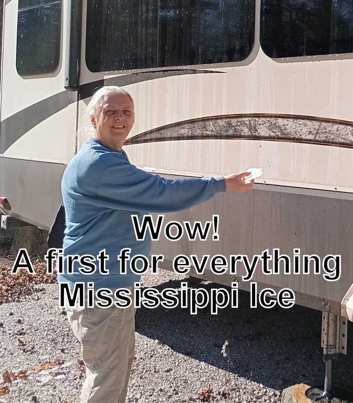 It was a cold morning on the 28th so we delayed our leaving time until noon when it was a bit warmer. Connie pushes the slide buttons and heard unusual sounds as the living room moved inside, finding the noise was ice from the slide awning crashing to the ground. There is a first for everything! Getting hitched up went fairly smooth once we were lined up, and we headed out for our short trip to French Camp, MS. First stop was for diesel fuel and coffee, followed by two ‘side of the road’ stops and a driver switch. John did well driving, no trouble with eyesight, but did have some trouble backing up the trailer onto our site. We were mostly set up by 4pm giving us a relaxed evening and Connie had the computer set up to print out staff lined paper for harp songs to practice. Our project meeting was Saturday morning and we looked forward to Monday when we start our volunteer work.