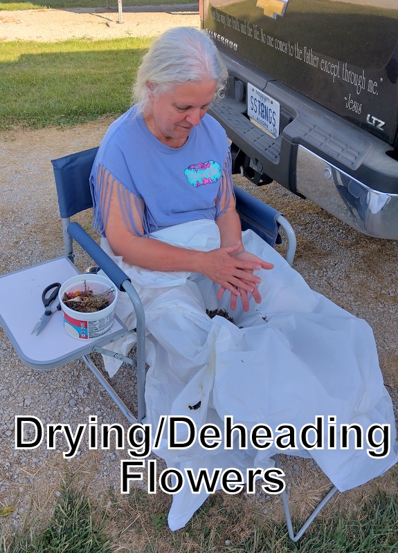 A busy month, but filled with some much-enjoyed relaxation. Connie was able to get her sister’s memorial flowers laid out to dry and de-headed. John picked up a beautiful flamed maple electric guitar, amp, and another acoustic amp from his cousin which he enjoyed playing around with in the RV (with loud volume) when Connie was gone for the day. (Later in the month he got another guitar that needs some repairs!). We enjoyed the Wednesday volunteer day lunches at the camp (including cornbread and dipped cookies), and a few TV movie nights. Connie spent a morning struggling with our new printer and some extra time trying to get the formatting for our web blog photos to look good again. She also researched our back flush RV leak and pieced together photos to trace the plumbing lines (what a tangled web). John purchased new guitar strings for his Taylor guitar and had his patience tested when a new string broke because of his limited eyesight. Connie’s sense of adventure caused us to take a short-cut home from a visit on a dark, moonless night across a ‘dry creek crossing’ – at the top of the very eroded gully our headlights showed it was neither dry or crossable. She was able to back up a quite a way to a farm field access, get turned around on the narrow road, and proceeded home on the safe highways. So much for adventure.
