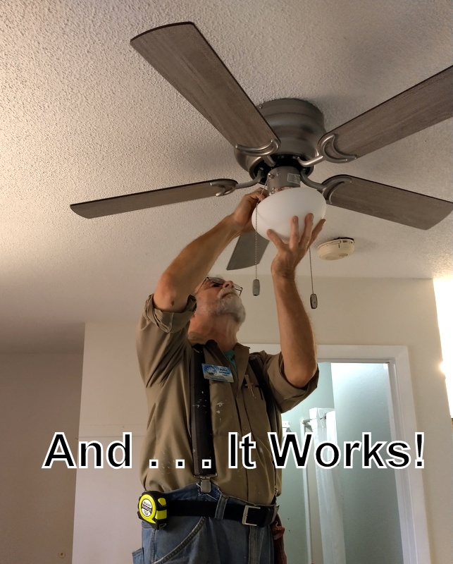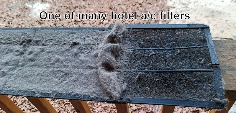 Volunteer work continued with a total of 101 hours this month, mostly in the hotel rooms. We decided in January that we would donate the materials we purchased to the camp so we made our shopping lists, did the work, and started a new list. Our tasks included: One mini-blind repaired and another replaced; cleaned and replaced hotel porch jelly jar globes; made and put up some custom trim base boards; caulked carpet strips over bare floor joints, and kept trying various scenarios to fix the ceiling fan light before declaring it “dead” and replacing it. We broke a key off in a lock and made some trips to the local Ace Hardware to have it removed, rekeyed (twice, didn’t have the master key the first trip), leading us to lube all the locks and suggest it be a scheduled maintenance item due to corrosion tendencies. There was lots of patching and touching up walls and ceilings including some major work from leaks in a bathroom and bedroom. As we went through the rooms the exhaust fans and ceiling fans were cleaned, and baseboard trim was touched up as needed. We were creative using up old paint, mixing, straining, and making new colors for one large bedroom makeover. John cleaned all the a/c unit filters and Connie made some labels for confusing light switches and the hotel laundry area.