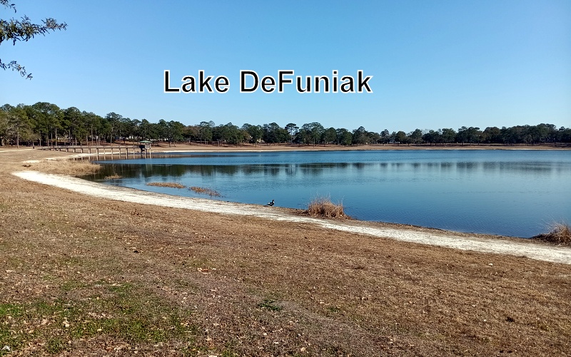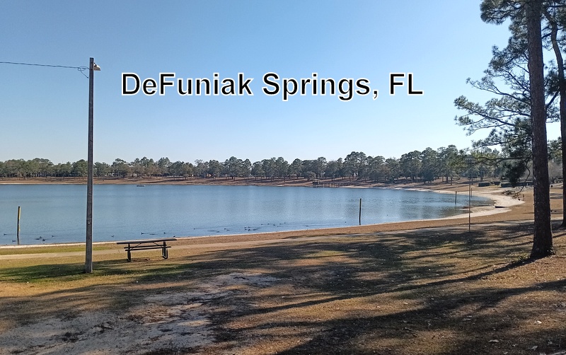 Our grocery shopping (Aldi’s) took us to Niceville usually, Walmart was close by in DeFuniak Springs, and most trips included lunch out. Only one propane tank fill early in the month, but several trips for materials for camp repairs. We finally made it to Blue Mountain Beach on the 3rd. It was wonderful, chilly and breezy, and easy parking with a short walk to the clear multi-color blue water and white sand followed by a bistro-type lunch and movie after returning home. We walked the 1-mile sidewalk around Lake DeFuniak spotting turtles, lots of ducks, and lots of sunshine. This lake is one of only two almost perfectly circular spring-fed lakes in the world (the other one, Kingsley Lake near Starke, FL)! Another trip to town included leisurely strolls through some antique shops. Connie had a few “down” days and was surprised when John took her out for pizza (that she had been craving for a while) in Crestview – it was excellent pizza and there were two oriental food shops that John stopped in for some Nori Maki seaweed rice cracker snacks.